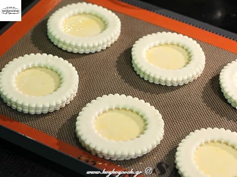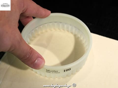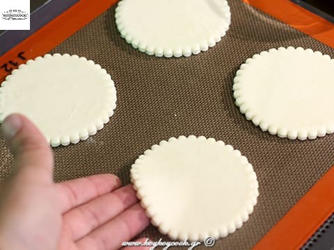 Κόβουμε 12 στρογγυλούς δίσκους με κουπάτ διαμέτρου 10 εκ ..